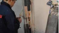這是焊接完成后必須對銅管進行的壓力測試,往銅管內充入一定壓力的氮氣進行保壓,一般壓力測試時間為24小時。